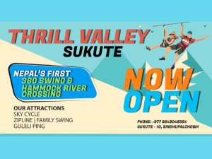The Thrill Valley Sukute operates adventure activities in Sukute Beach, Sindhupalchowk. Recently, Thrill Valley operated a Hammock Cable Car, 360-degree swing and tandem Sky Rope cycle above the Bhotekoshi / Sunkoshi River in Sukute Beach. Thrill Valley, which has been operating rafting and other tourist activities for the past few days, has launched Hammock Cablecar, 360 Degree Swing and Tandem Sky Rope Cycle for the first time in Nepal. Along with the operation of these activities, more adventure activities have been added to Sukute. Tourists go to Sukuta for a short vacation, to relax, or to go rafting. Now tourists will be able to enjoy more adventure activities in Sukute.